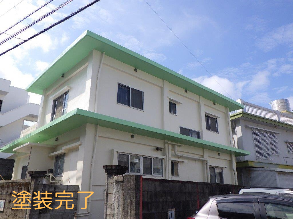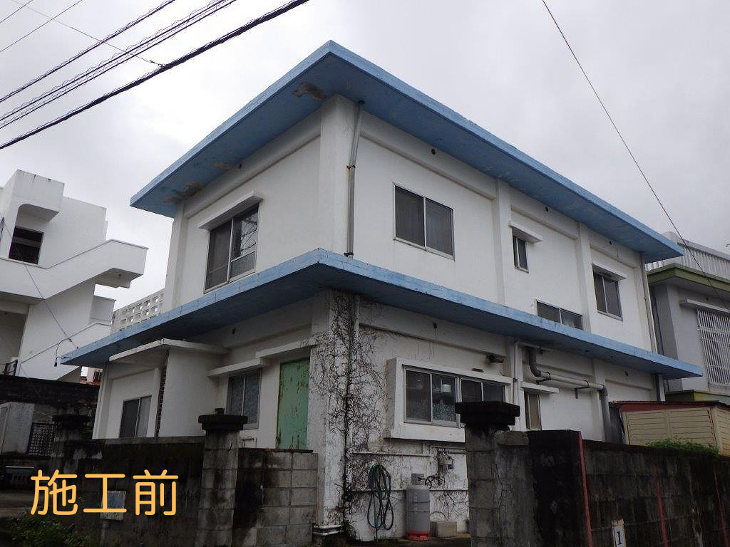 外壁のベースはホワイト系で現況のポイント色は水色系でしたが
