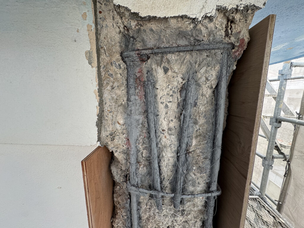 軒や柱にバクレツがあったため、サビ止めや型枠をしてから